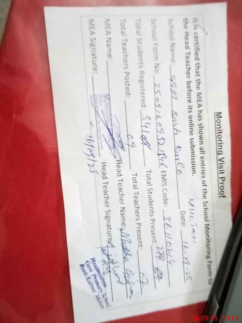 | EMIS Code: 36110214 | Name of School: GGPS BASTI KALRO MULTAN | |||