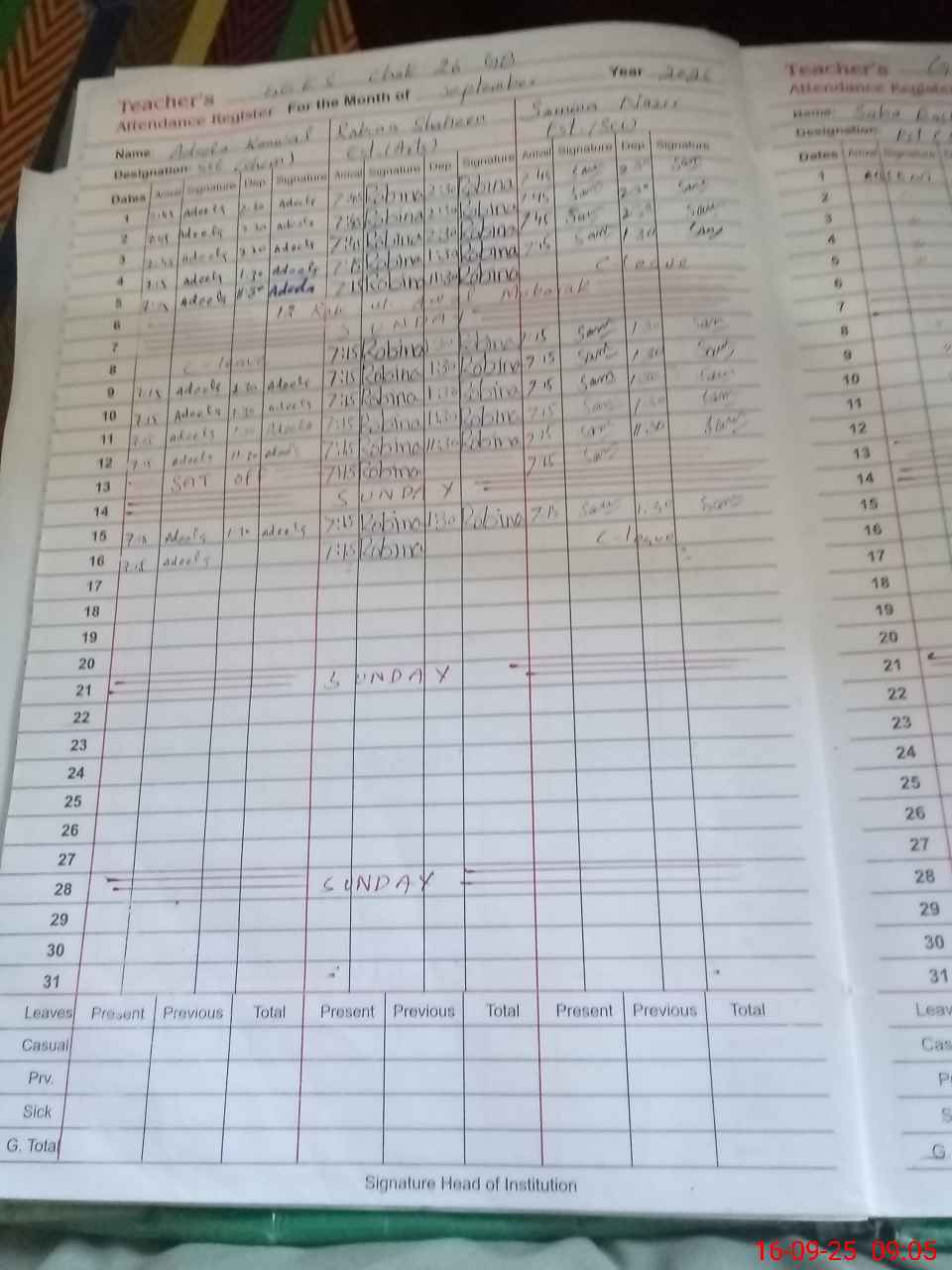 | Remarks (Use Separate Page if Required): 1 Ms Saba Rasheed PST absent since 07 June 2024 till now 2 NSB and FTF record is not updated after June 2025 | |||||
