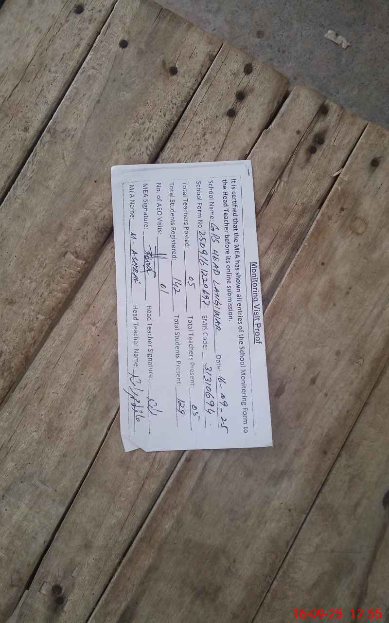 | EMIS Code: 31310694 | Name of School: GPS HEAD LANJI WAR | |||