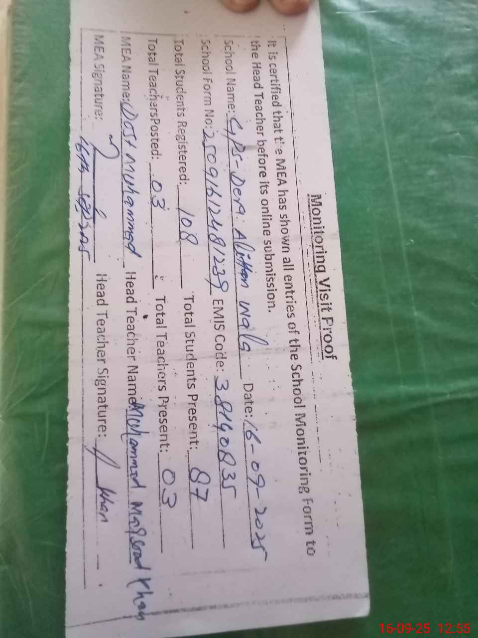 | EMIS Code: 38140835 | Name of School: GPS DERA ALLTAN WALA | |||