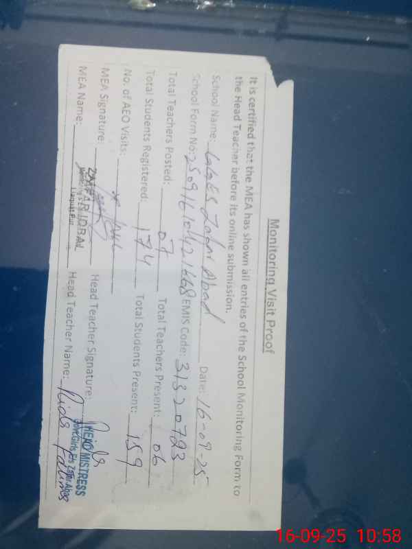 | EMIS Code: 31320723 | Name of School: GGES ZAFAR ABAD | |||