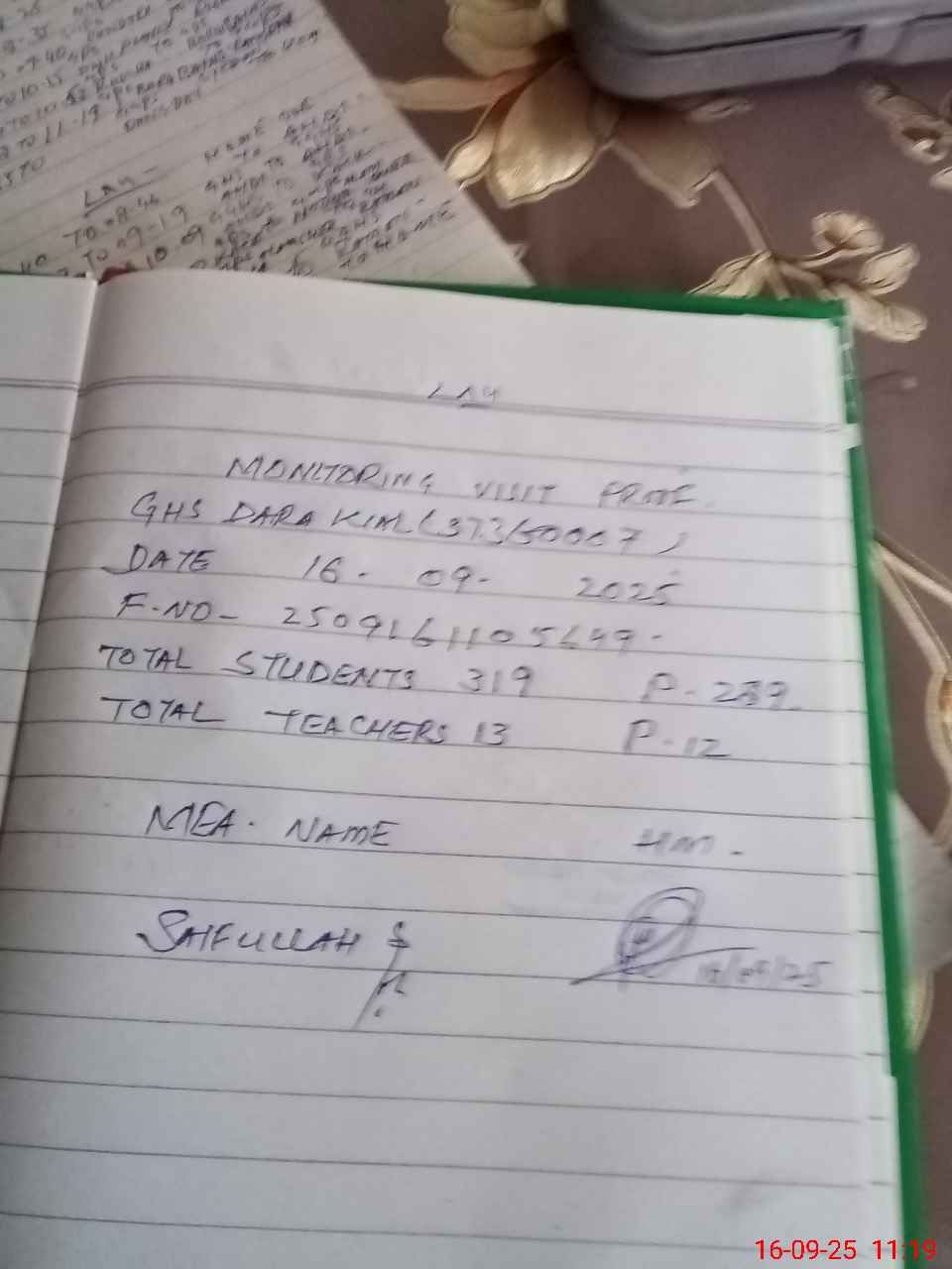 | EMIS Code: 37360007 | Name of School: GHS DARA KIAL | |||