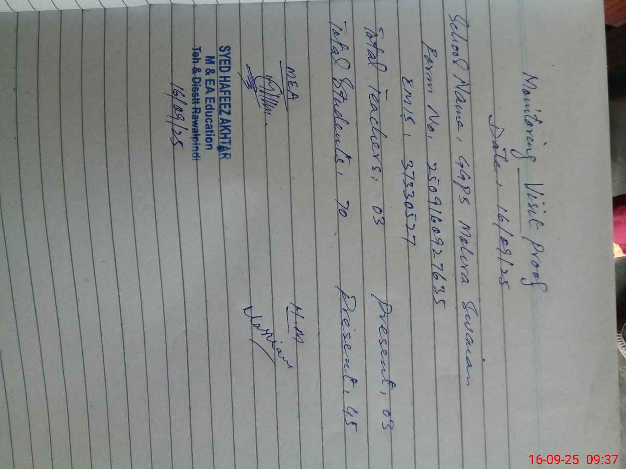 | Monitoring Date: 16-09-2025 | Start Time: 16-09-2025 09:11 AM | End Time: 16-09-2025 09:39 AM | Name of MEA: Sy**** Ha**** Ak**** | |
