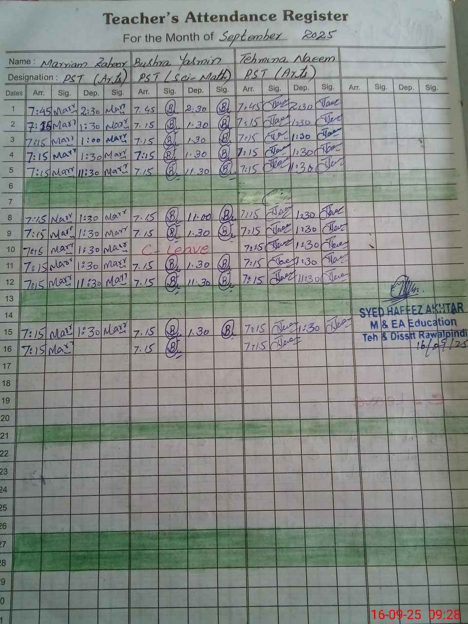 | Name: Ma**** Za**** Designation: (School Headmaster's/Headmistress's) PST Phone/Cell Number: 03**** |