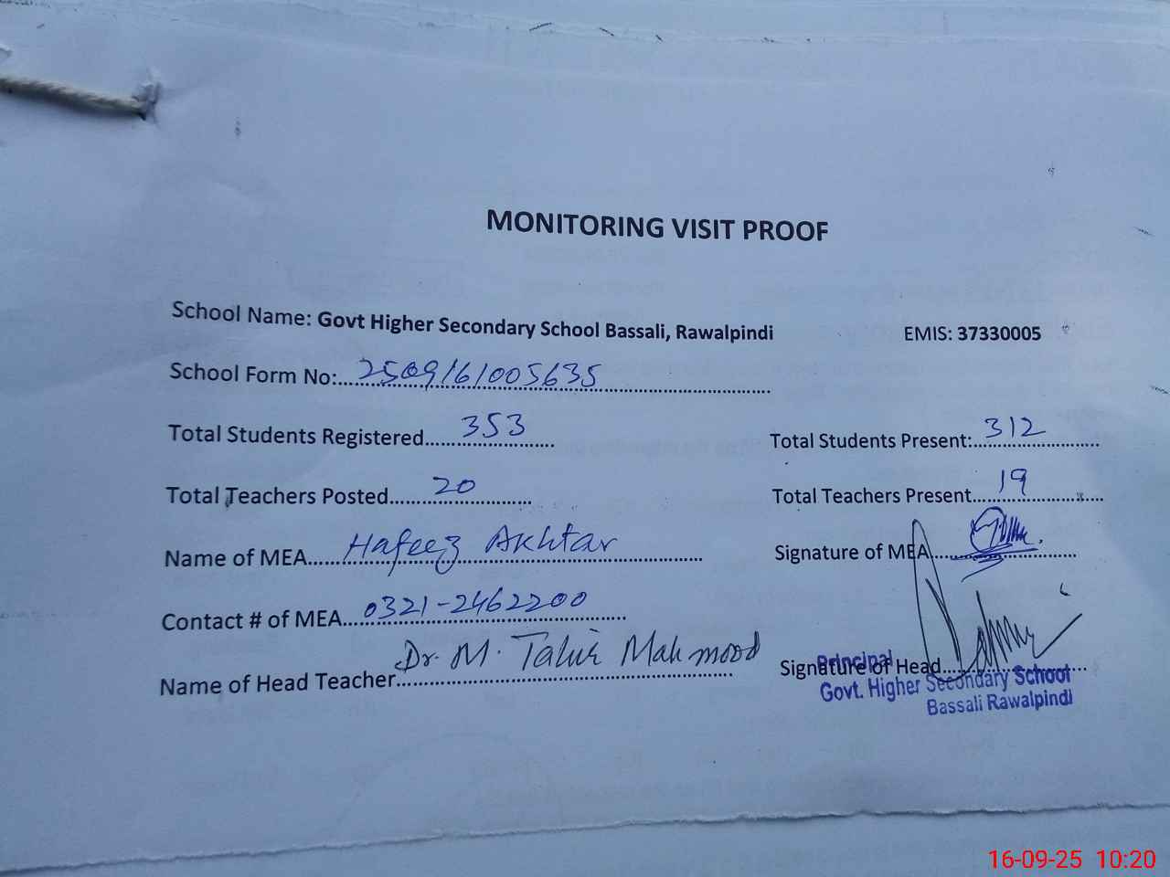 | Certified that this School was Inspected by the Undersigned MEA/DMO Today and the Information Stated Above is as Per Record. | |||||