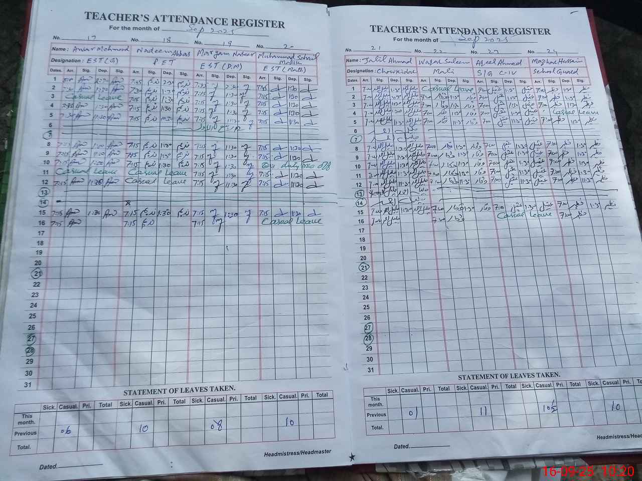 | No. of Students Present - Female | 0 | 0 | 0 | 0 | 0 | 0 | 0 | 0 | 0 | 0 | 0 | 0 | 0 | 0 | 0 | 0 |