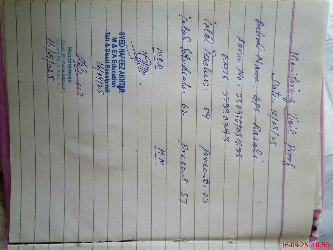 | Monitoring Date: 16-09-2025 | Start Time: 16-09-2025 10:30 AM | End Time: 16-09-2025 11:05 AM | Name of MEA: Sy**** Ha**** Ak**** | |