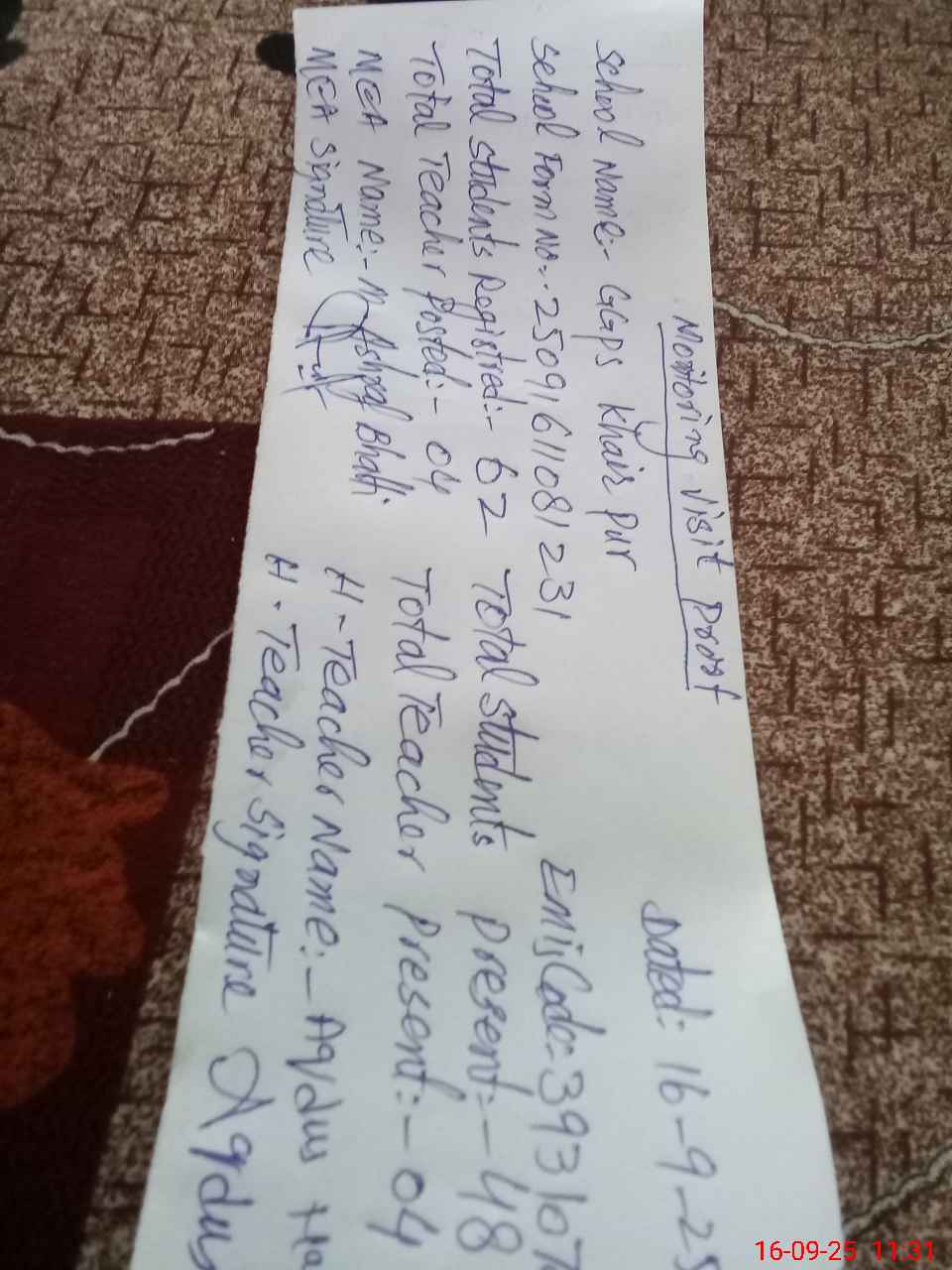 | EMIS Code: 39310703 | Name of School: GGPS KHAIR PUR | |||