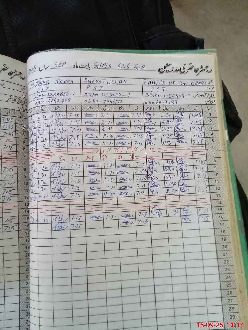 | CNIC | Full Name | Designation | R/C | Absence during last cal. month |