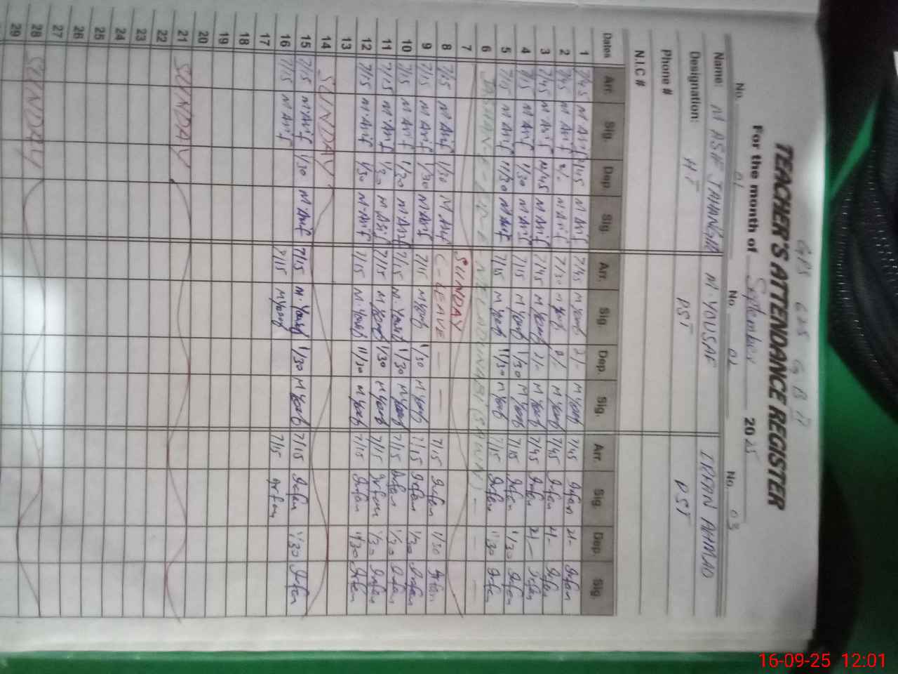| Name: MU**** ASIFJA**** Designation: (School Headmaster's/Headmistress's) PST Phone/Cell Number: 03**** |