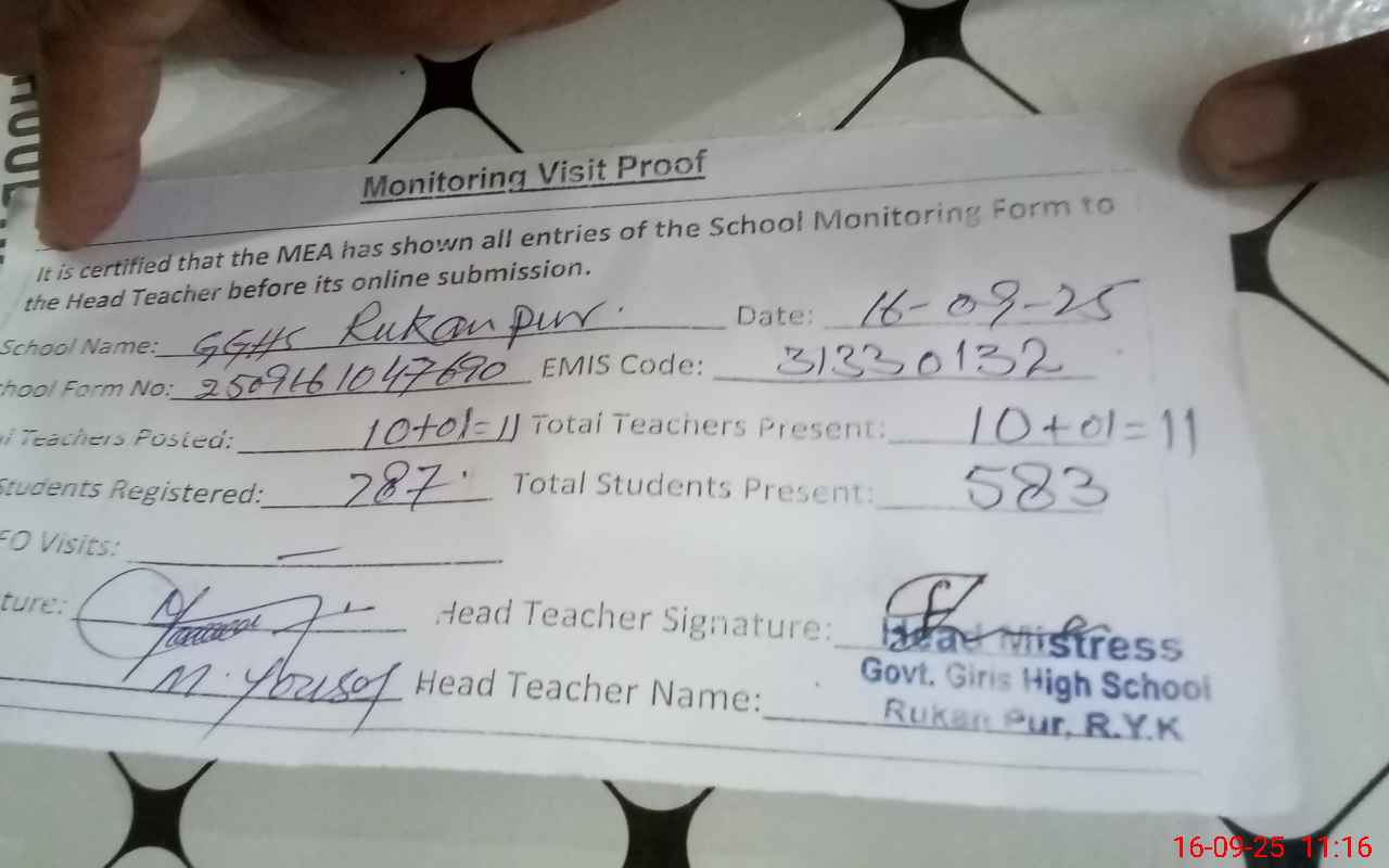 | EMIS Code: 31330132 | Name of School: GGHS RUKAN PUR | |||