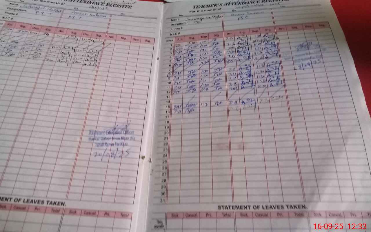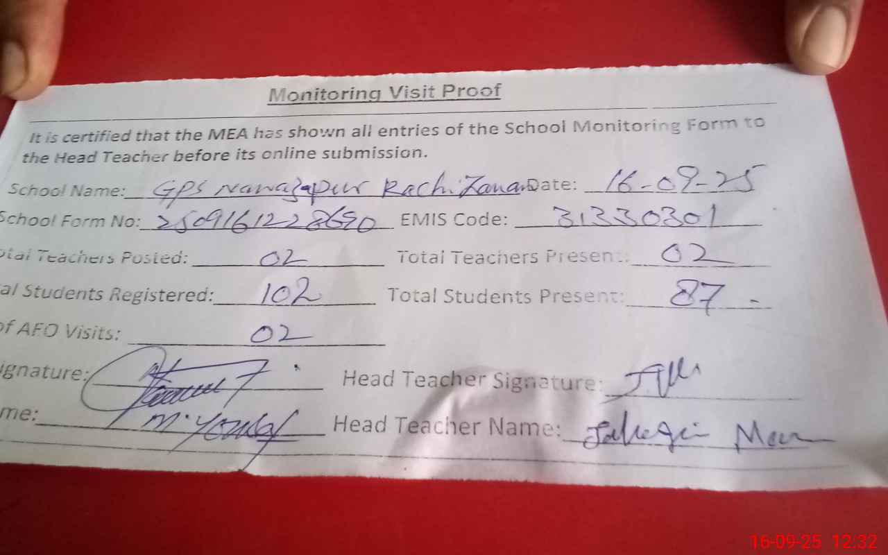 | Attendance Register | Head Teacher | MEA with School | Visit Proof |