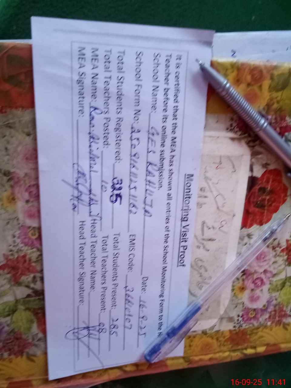 | Certified that this School was Inspected by the Undersigned MEA/DMO Today and the Information Stated Above is as Per Record. | |||||