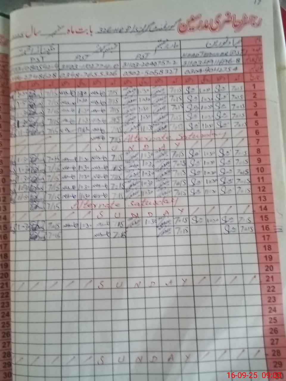 | CNIC | Full Name | Designation | R/C | Absence During Last Calender Month |