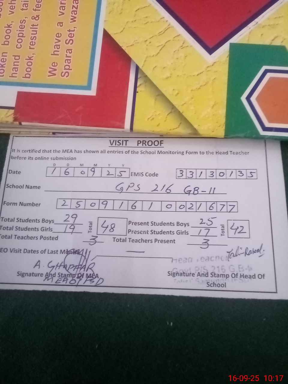 | EMIS Code: 33130135 | Name of School: GPS 216 GB II | |||