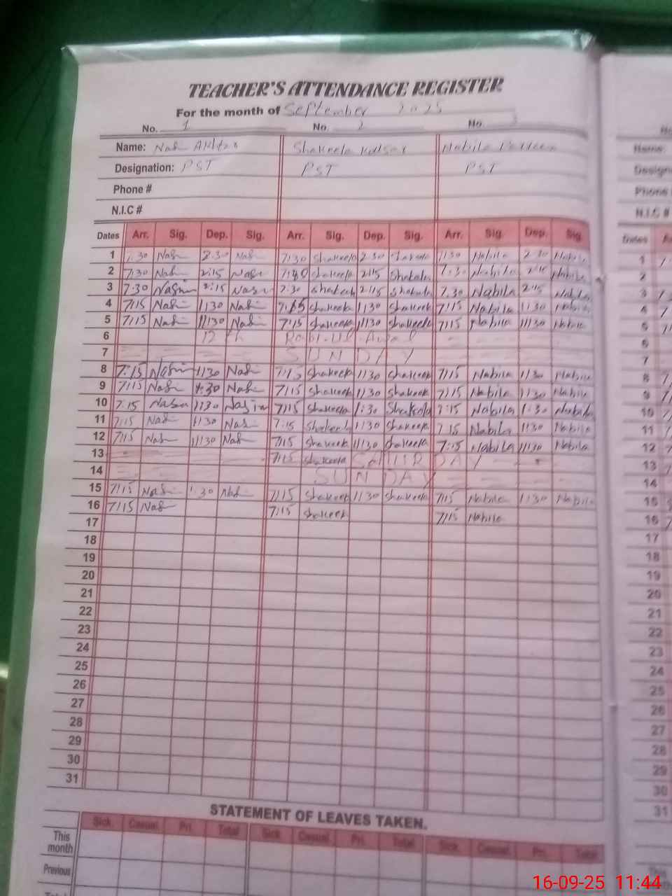 | Name: NA**** AK**** Designation: (School Headmaster's/Headmistress's) PST Phone/Cell Number: 03**** |