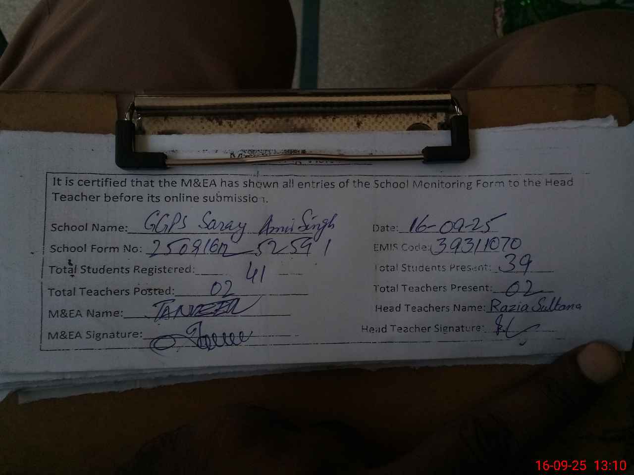 | EMIS Code: 39311070 | Name of School: GGPS SARAY AMIR SINGH | |||