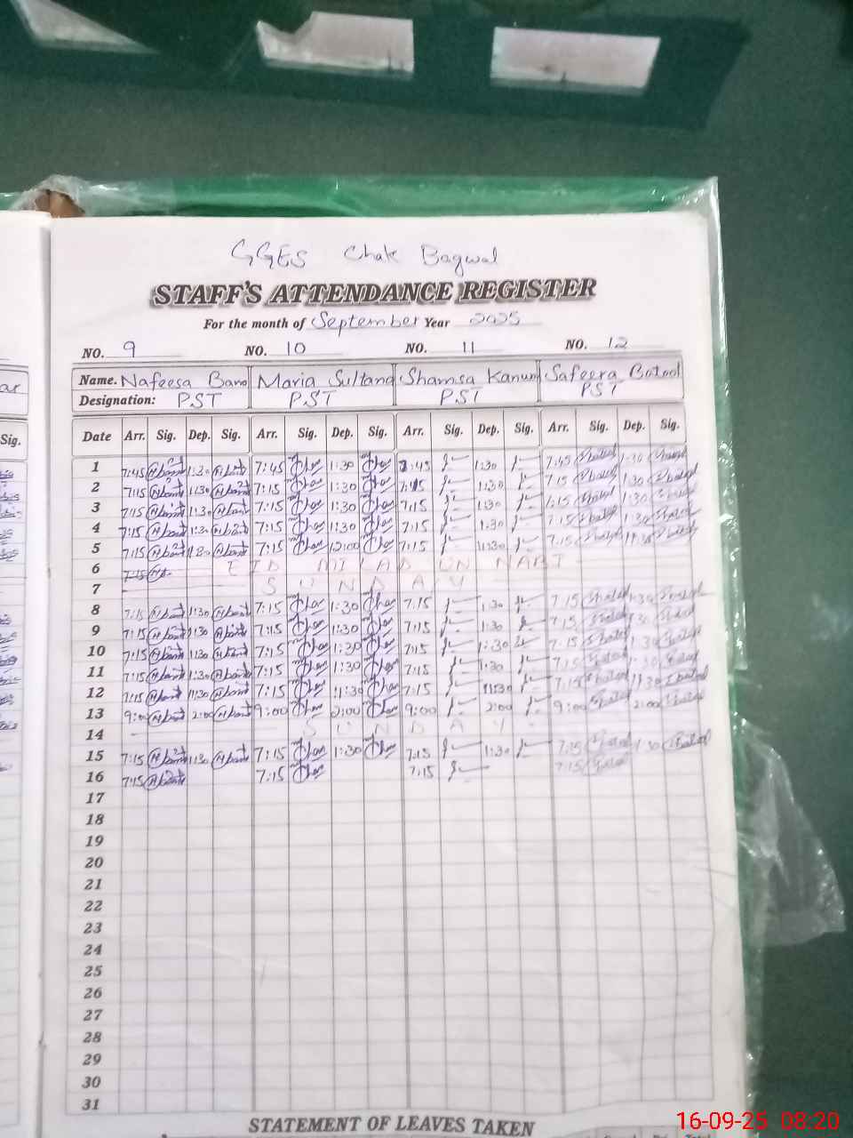 | Attendance Register | Head Teacher | MEA with School | Visit Proof |