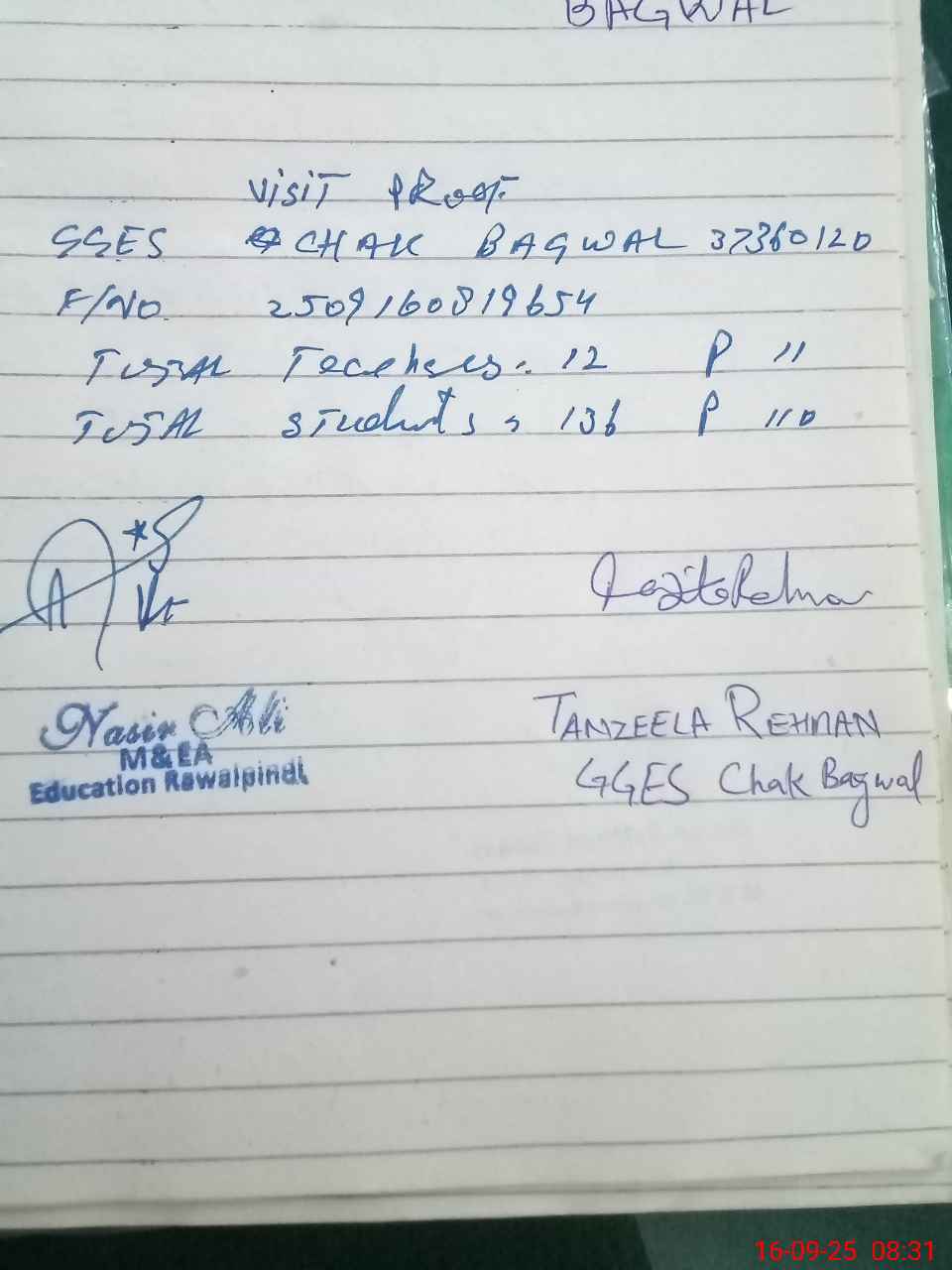 | Name: Ta**** Re**** Designation: (School Headmaster's/Headmistress's) SSE Phone/Cell Number: 03**** |
