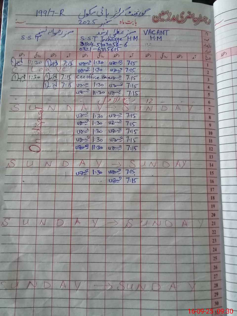 | Name: Uz**** Ar**** Designation: (School Headmaster's/Headmistress's) Ops Headmistress Phone/Cell Number: 03**** |