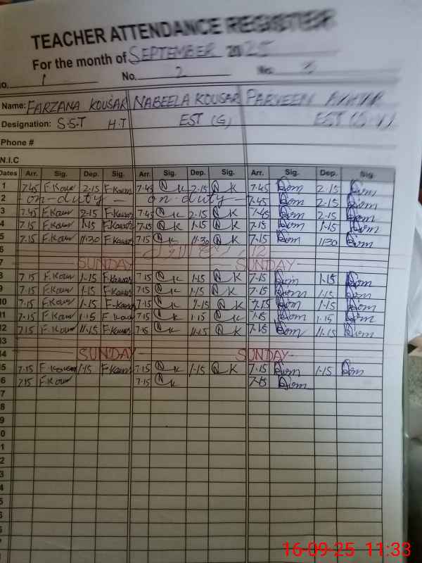 | Name: Fa**** KO**** Designation: (School Headmaster's/Headmistress's) SST (Arts) Phone/Cell Number: 03**** |