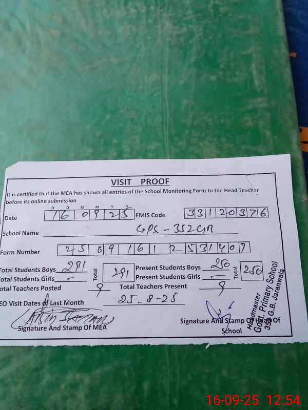 | EMIS Code: 33120276 | Name of School: GPS 352 GB | |||
