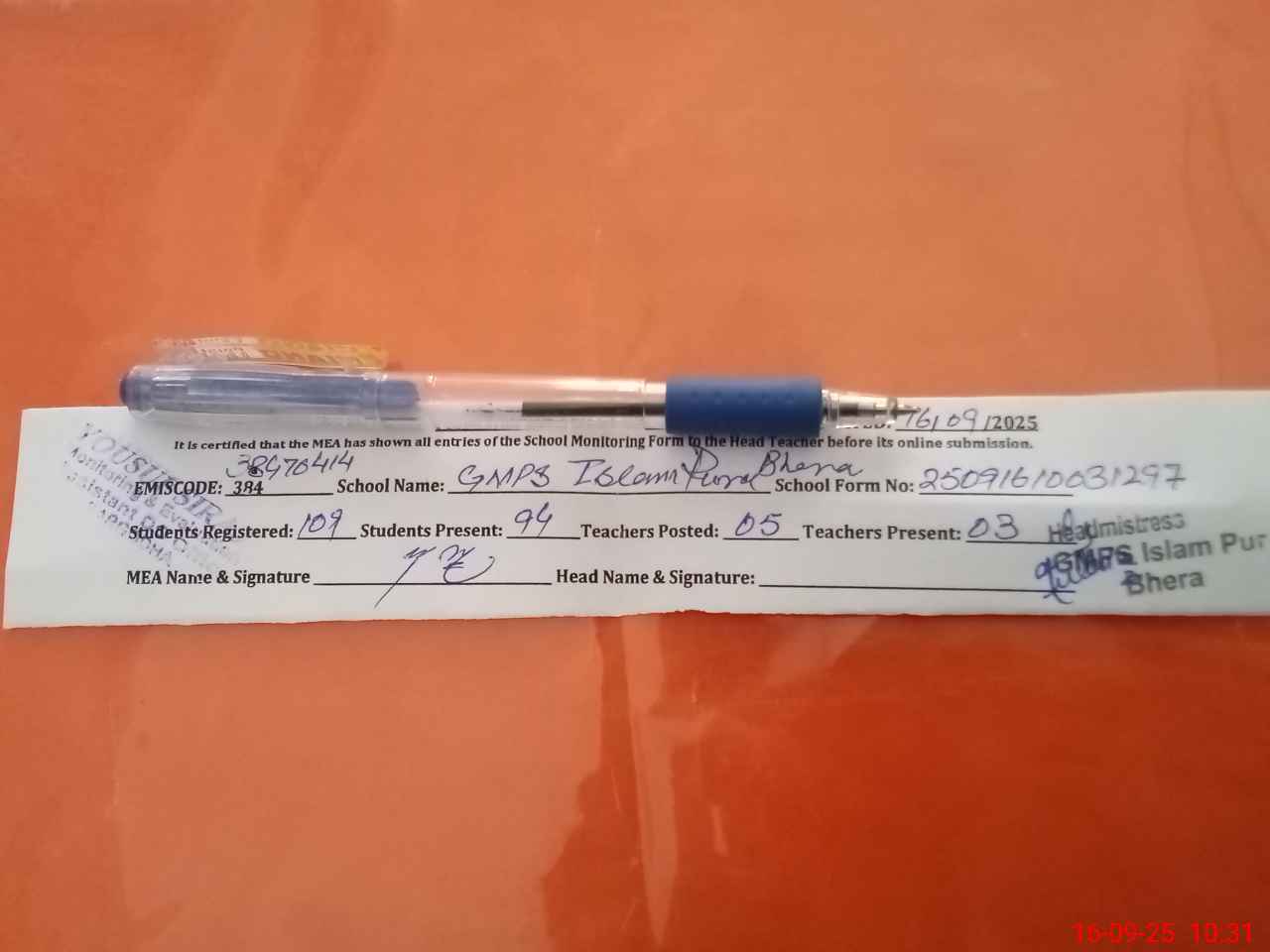 | EMIS Code: 38470414 | Name of School: GMPS ISLAM PUR BHERA | |||