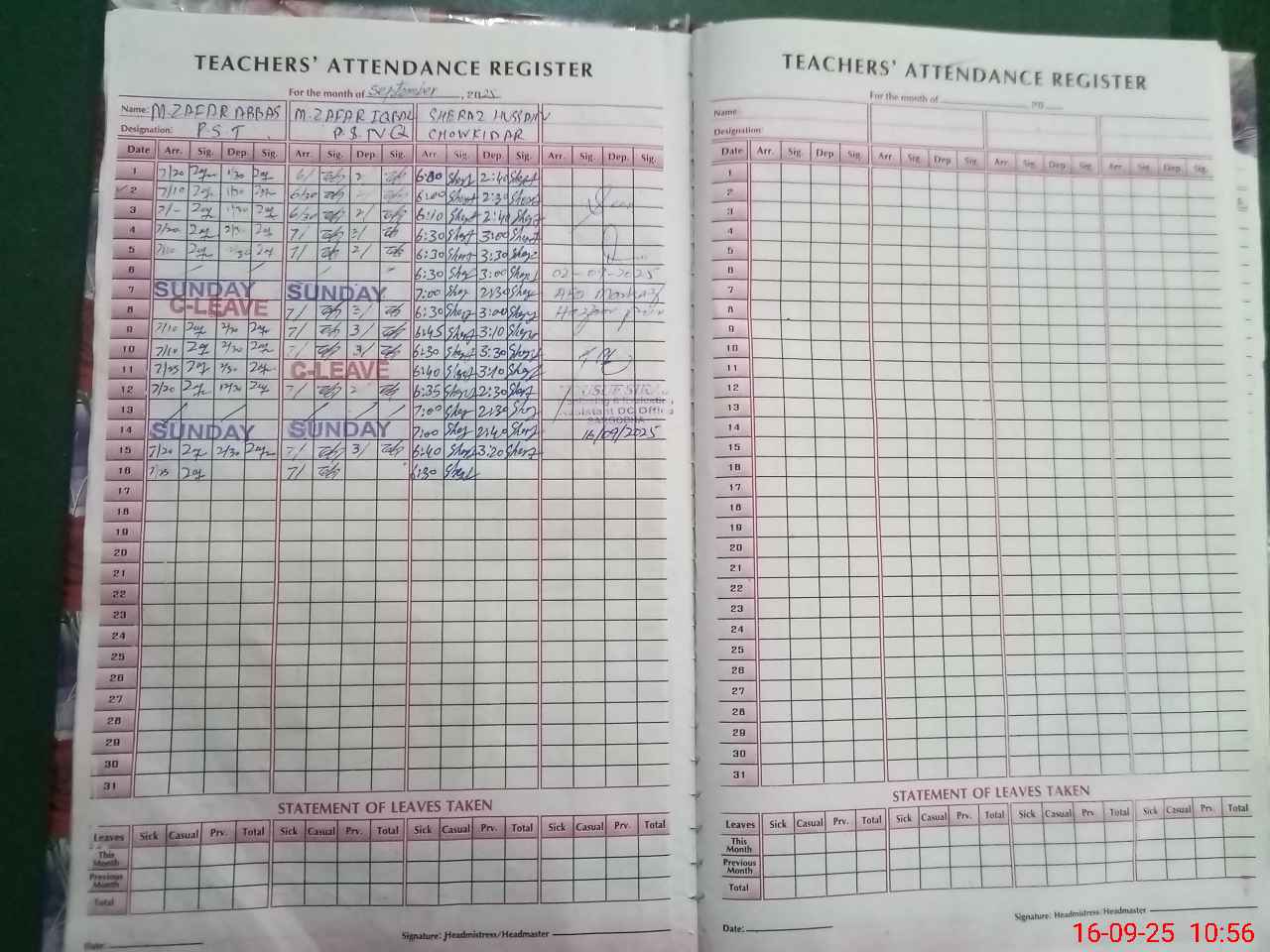 | CNIC | Full Name | Designation | R/C | Absence During Last Calender Month |