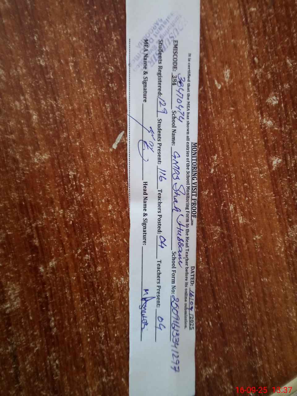 | EMIS Code: 38470474 | Name of School: GMPS SHAH HUSSAIN | |||