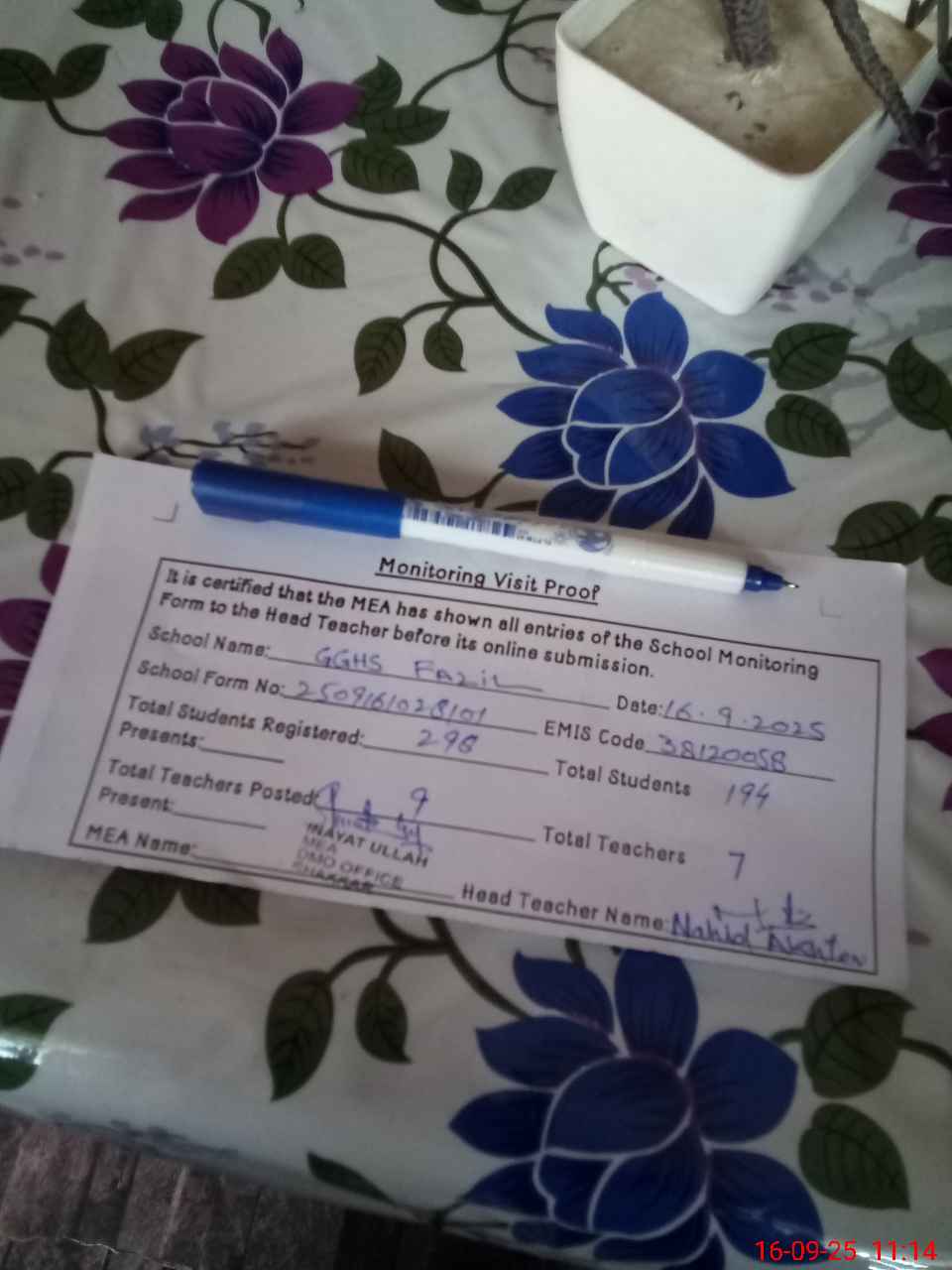 | EMIS Code: 38120058 | Name of School: GGHS FAZIL | |||