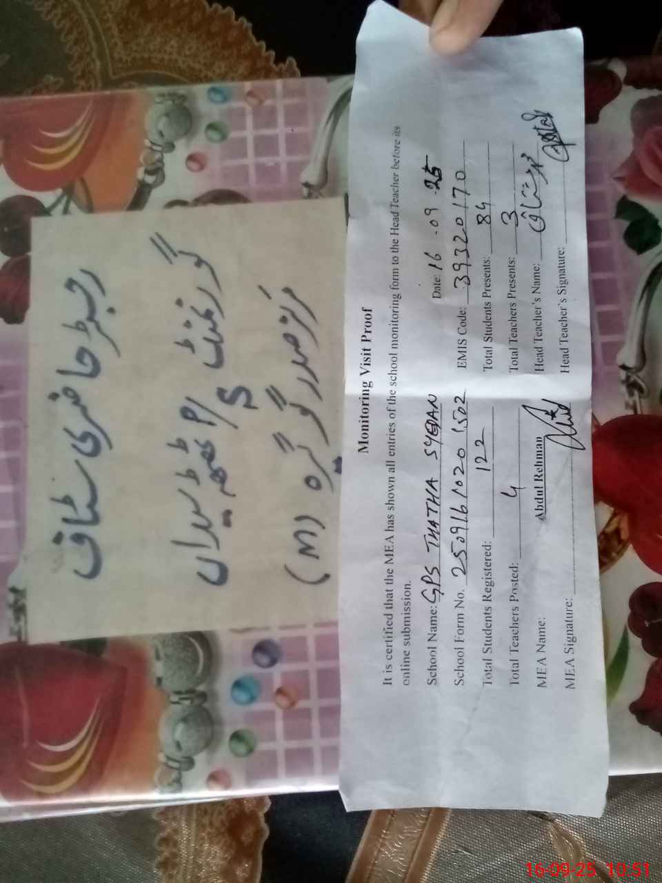 | EMIS Code: 39320170 | Name of School: GPS THATHA SYEDAN | |||
