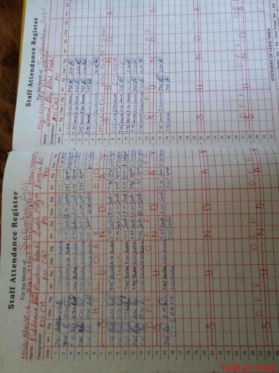 | Leave | Duty | Absent | Maternity | Medical | Ex- Pak |