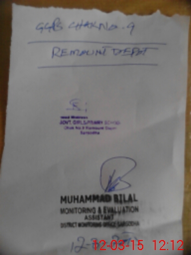 | EMIS Code: 38420712 | Name of School: GGPS CHAK NO.9 REMOUNT DEPOT | |||