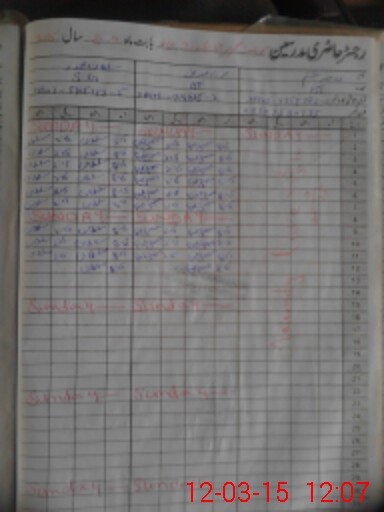 | CNIC | Full Name | Designation | R/C | Absence During Last Calender Month |