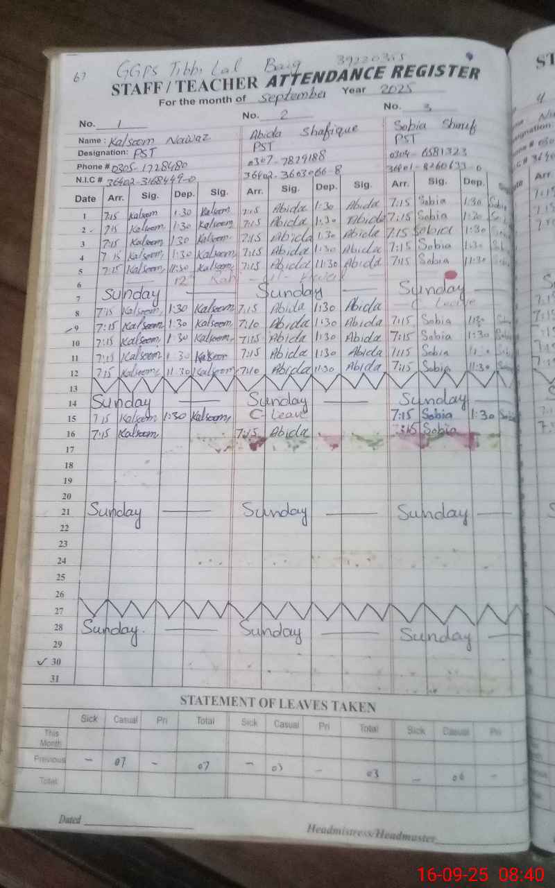 | Name: KA**** NA**** Designation: (School Headmaster's/Headmistress's) PST Phone/Cell Number: 03**** |