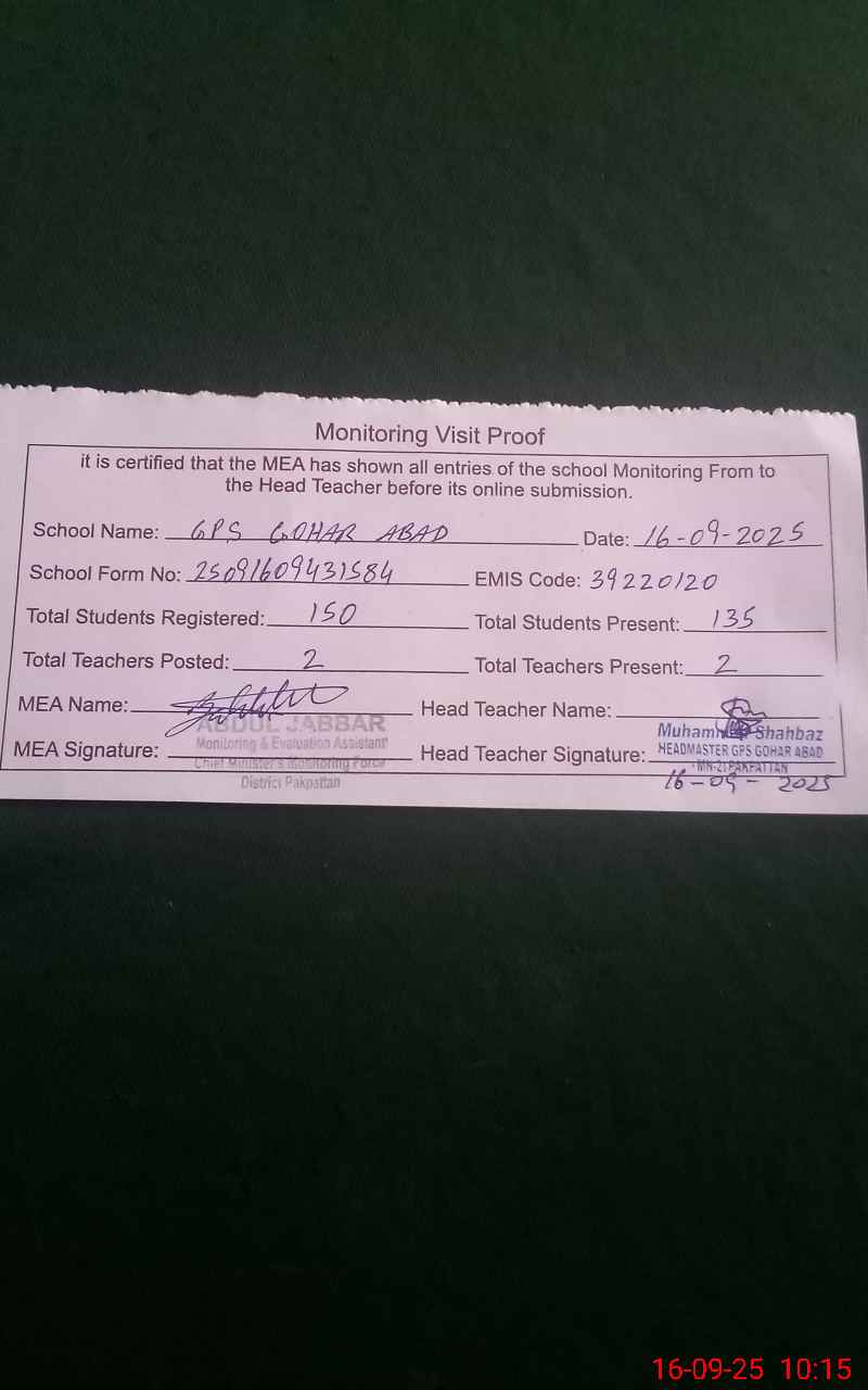 | EMIS Code: 39220120 | Name of School: GPS GOHAR ABAD | |||