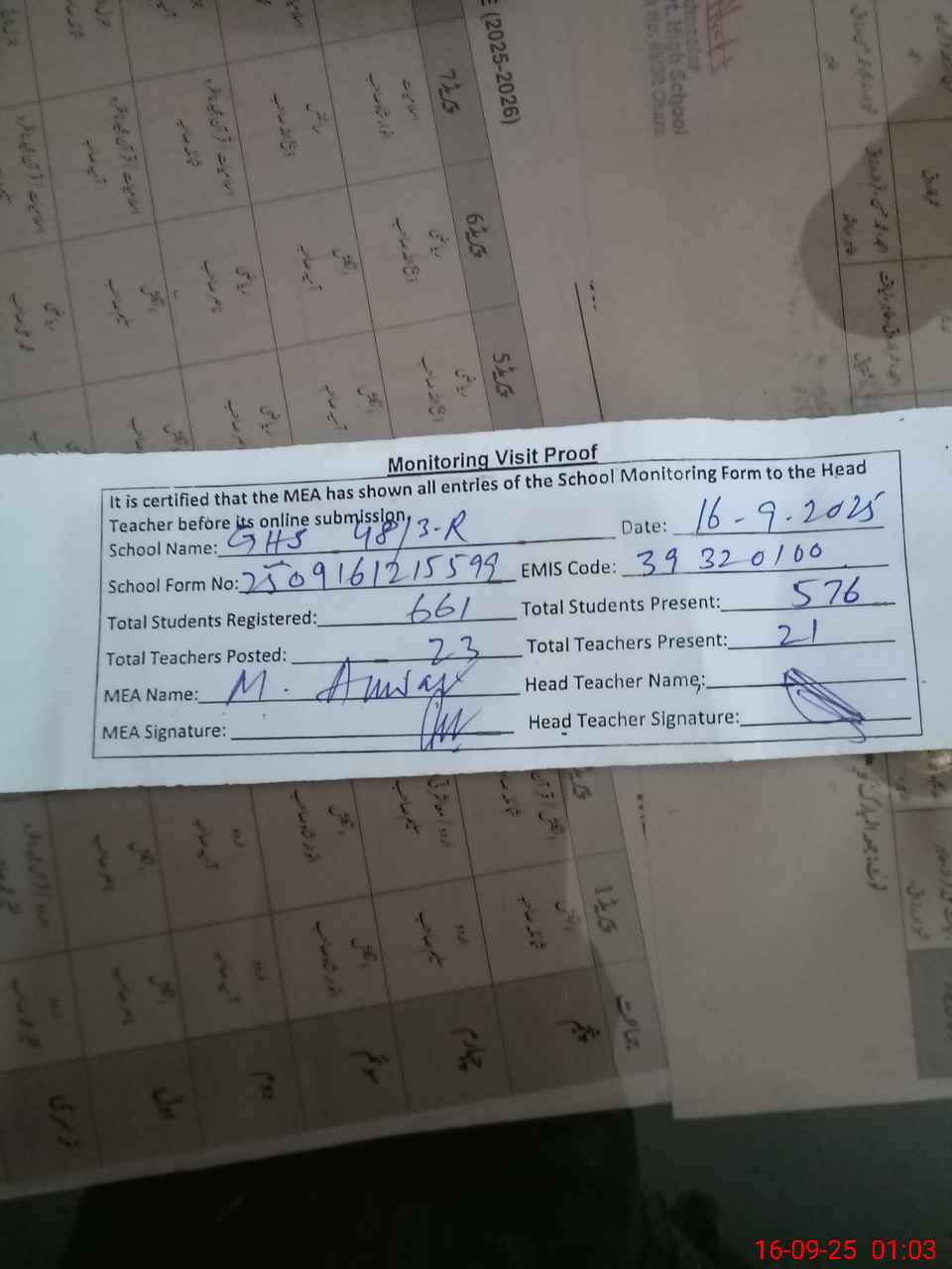 | EMIS Code: 39320100 | Name of School: GHS 48/3-R | |||