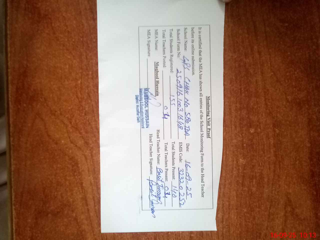 | EMIS Code: 32320252 | Name of School: GPS CHAK NO.580 TDA | |||