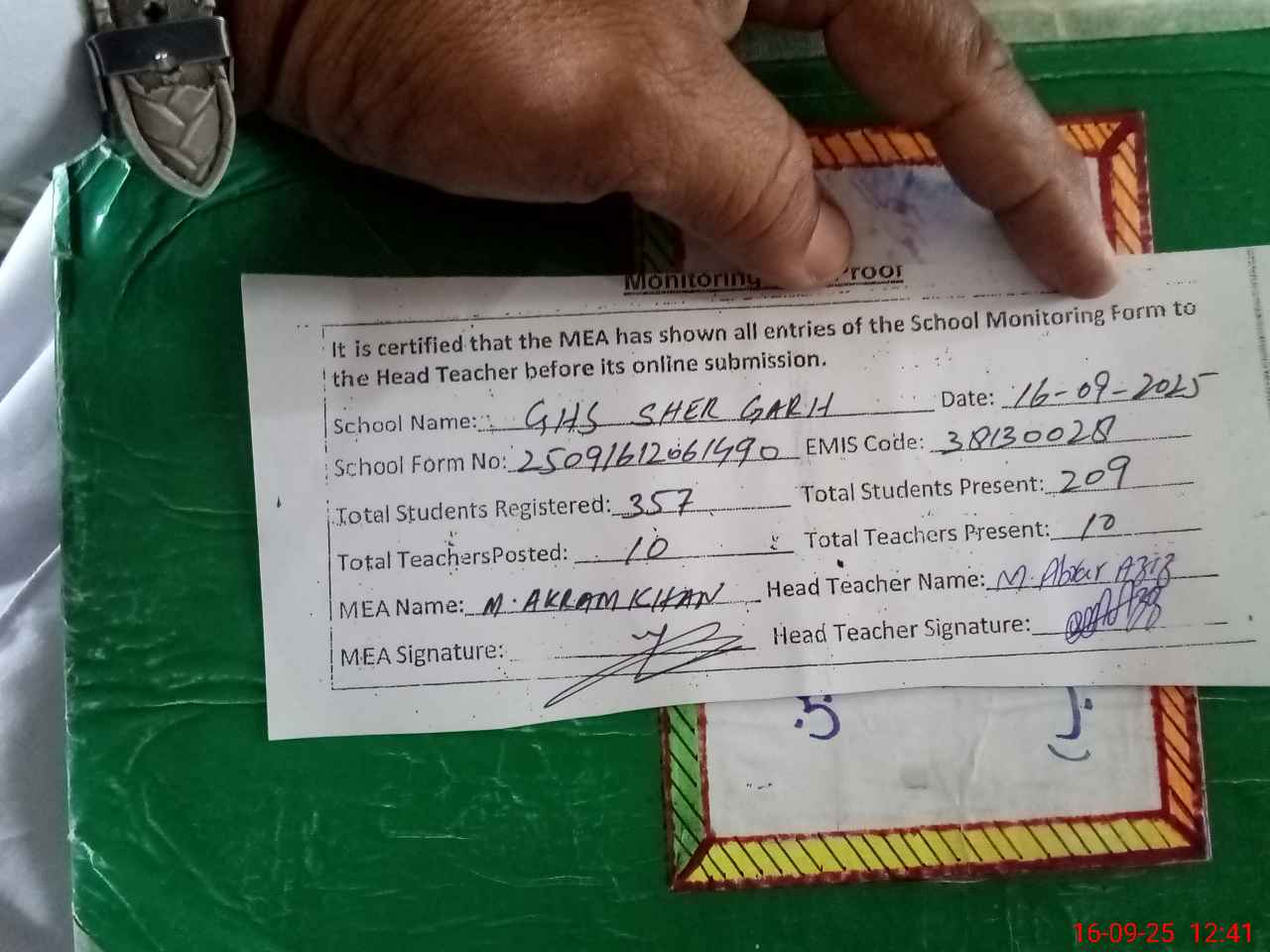 | EMIS Code: 38130028 | Name of School: GHS SHER GARH | |||
