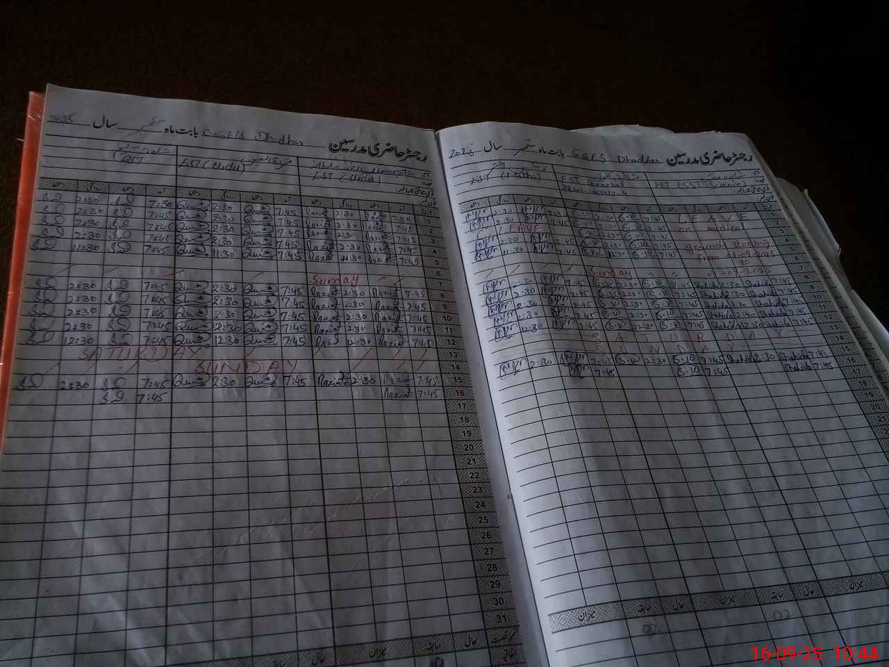 | Leave | Duty | Absent | Maternity | Medical | Ex- Pak |