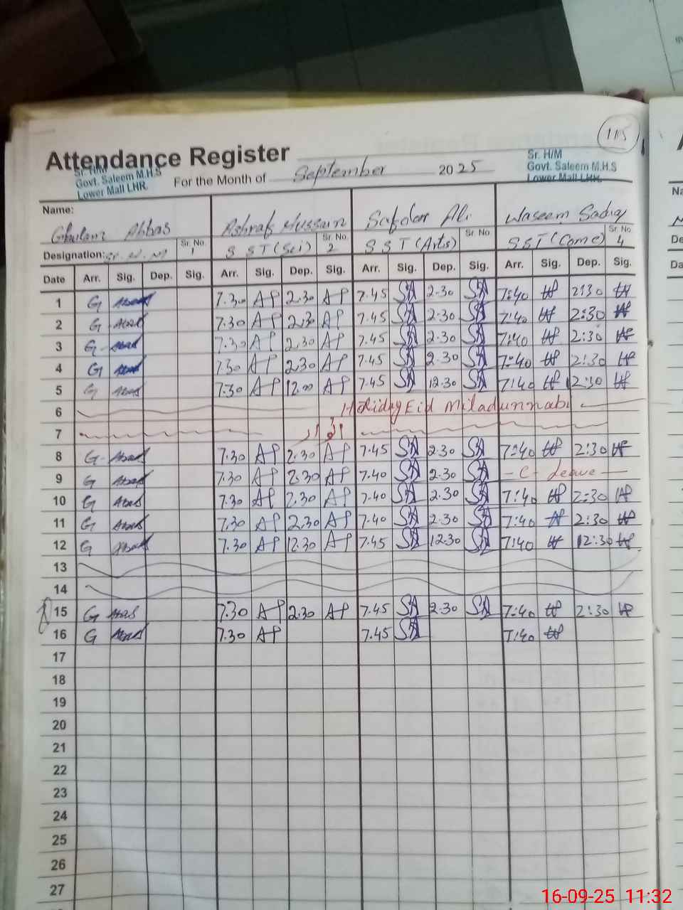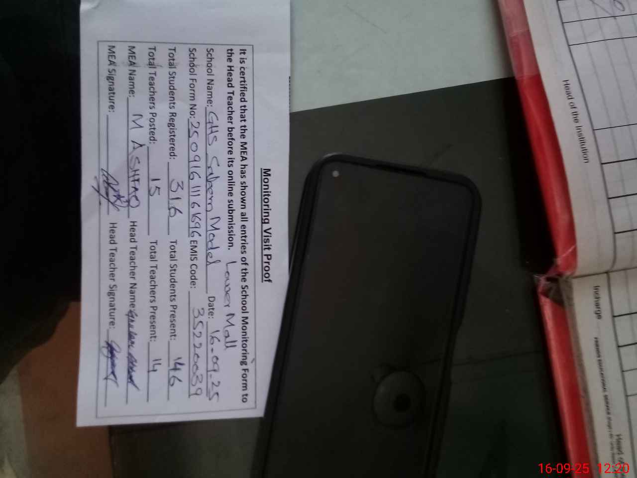 | Remarks (Use Separate Page if Required): EST Abdul Majid retired from service since Dec 24 but his name still shown on SIS School has total 27 rooms while 01 room Lab is declared dangerous and also in use but very less time School building is looking so old renovation required at several points Cleaning is poor 35220039 | |||||