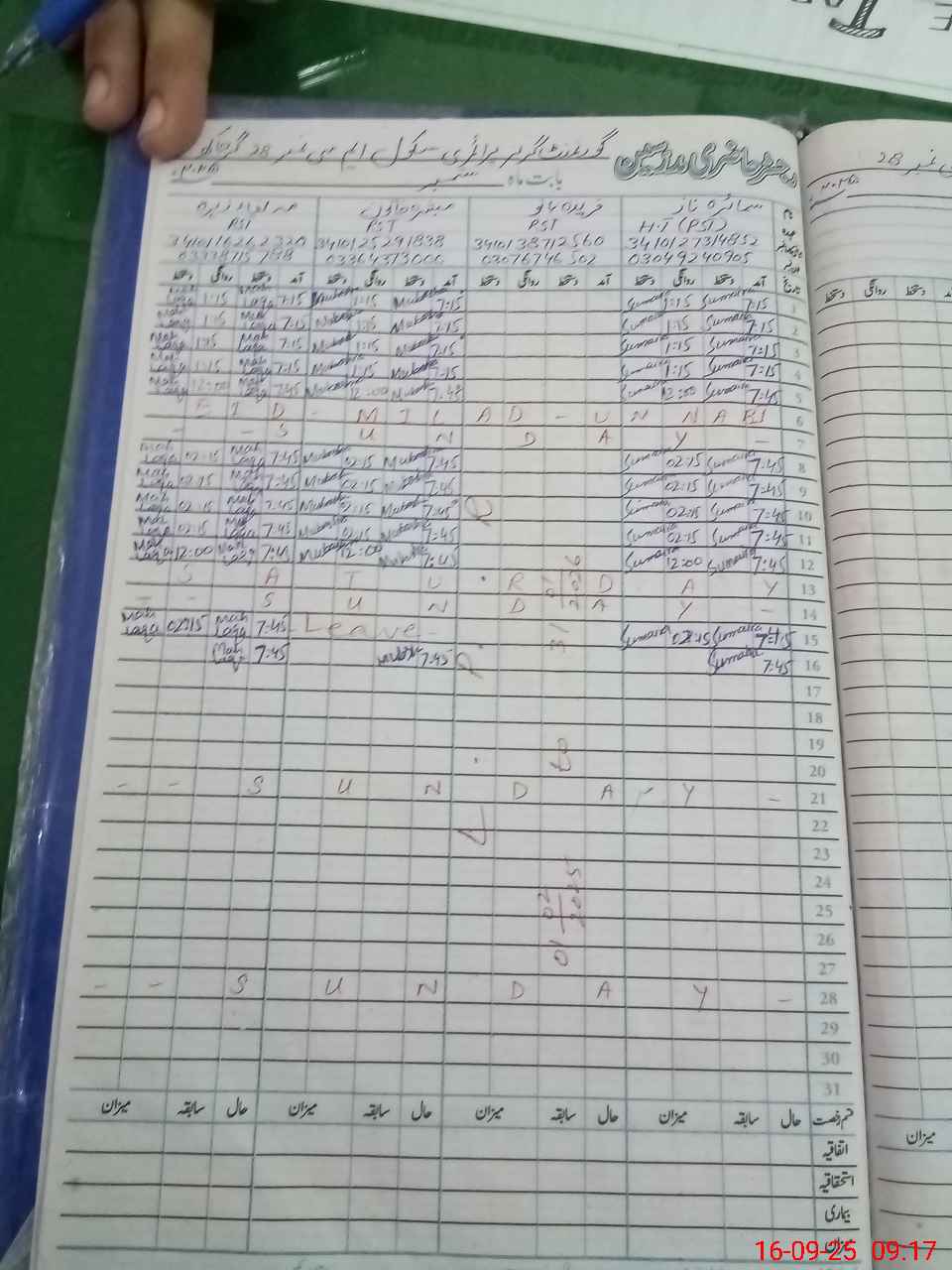 | Name: AQ**** KH**** Designation: (School Headmaster's/Headmistress's) PST Phone/Cell Number: 03**** |