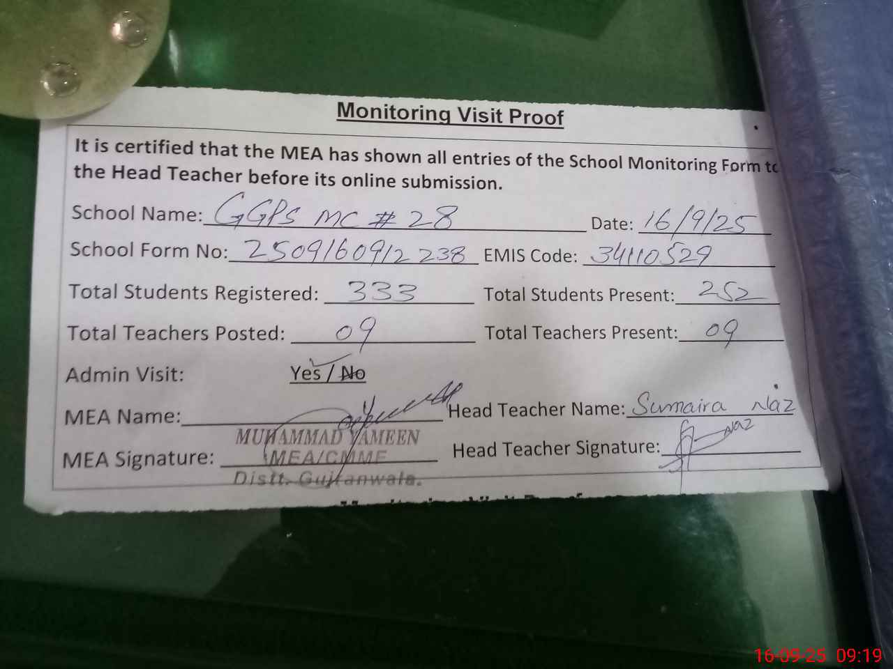 | EMIS Code: 34110529 | Name of School: GGPS MC NO.28 GUJRANWALA | |||