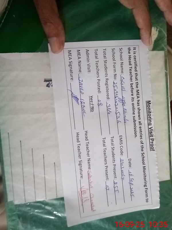 | Certified that this School was Inspected by the Undersigned MEA/DMO Today and the Information Stated Above is as Per Record. | |||||
