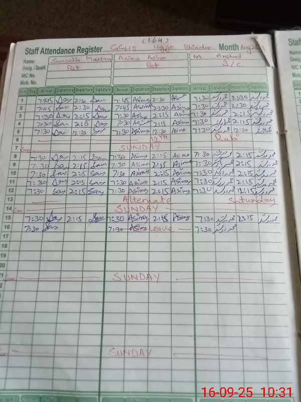 | Name: SA**** SH**** Designation: (School Headmaster's/Headmistress's) INC HEAD Phone/Cell Number: 03**** |