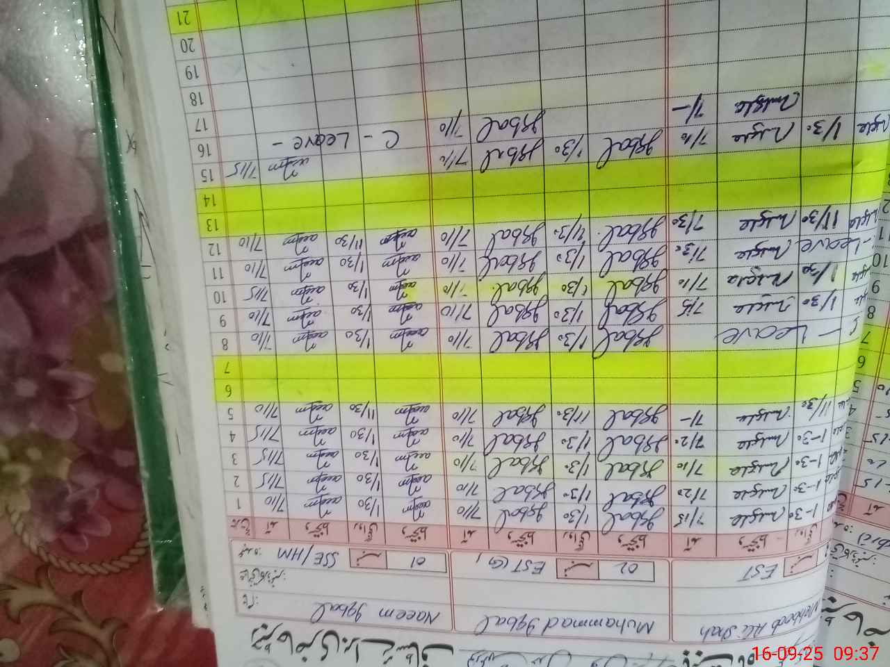 | CNIC | Full Name | Designation | R/C | Absence During Last Calender Month |