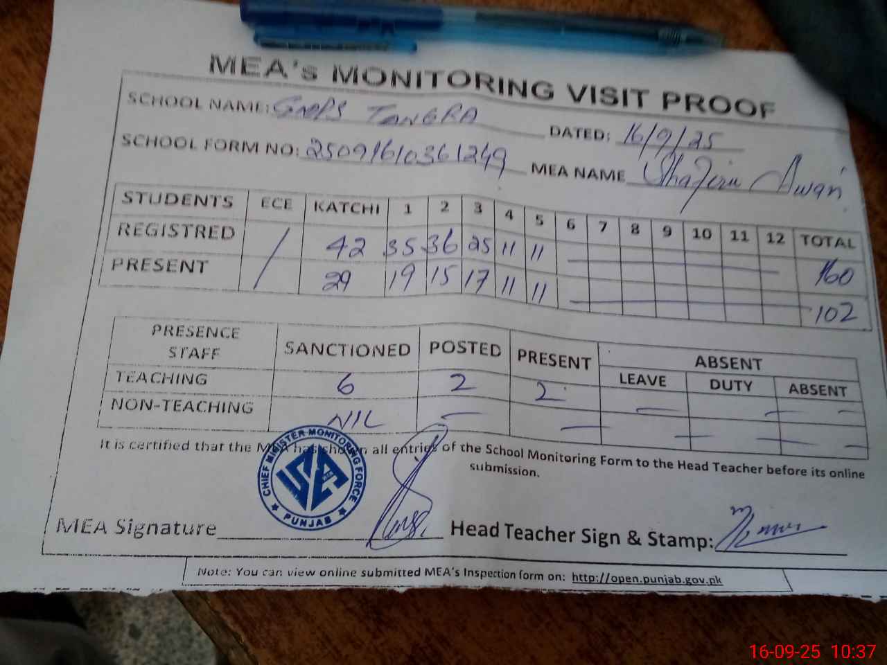 | EMIS Code: 36410422 | Name of School: GMPS TANGRA, SARAI SIDHU | |||
