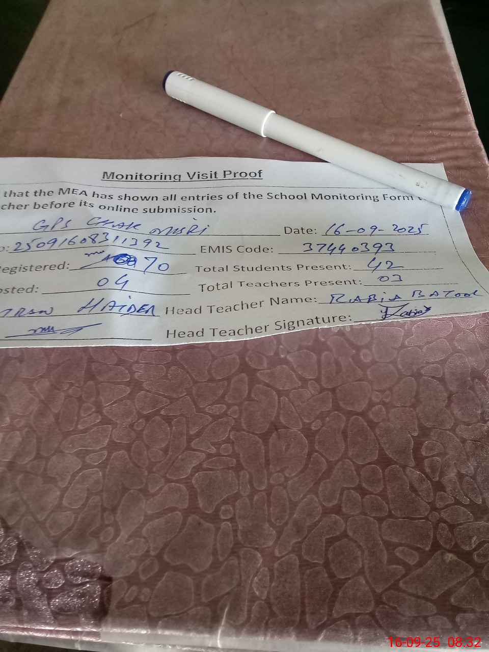 | EMIS Code: 37440393 | Name of School: GPS CHAK MISRI | |||