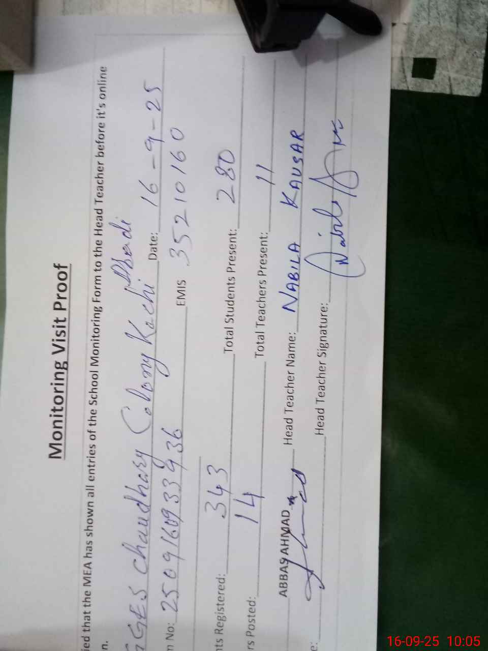 | EMIS Code: 35210160 | Name of School: GGES CHAUDRY COLONY KACHI ABADI | |||