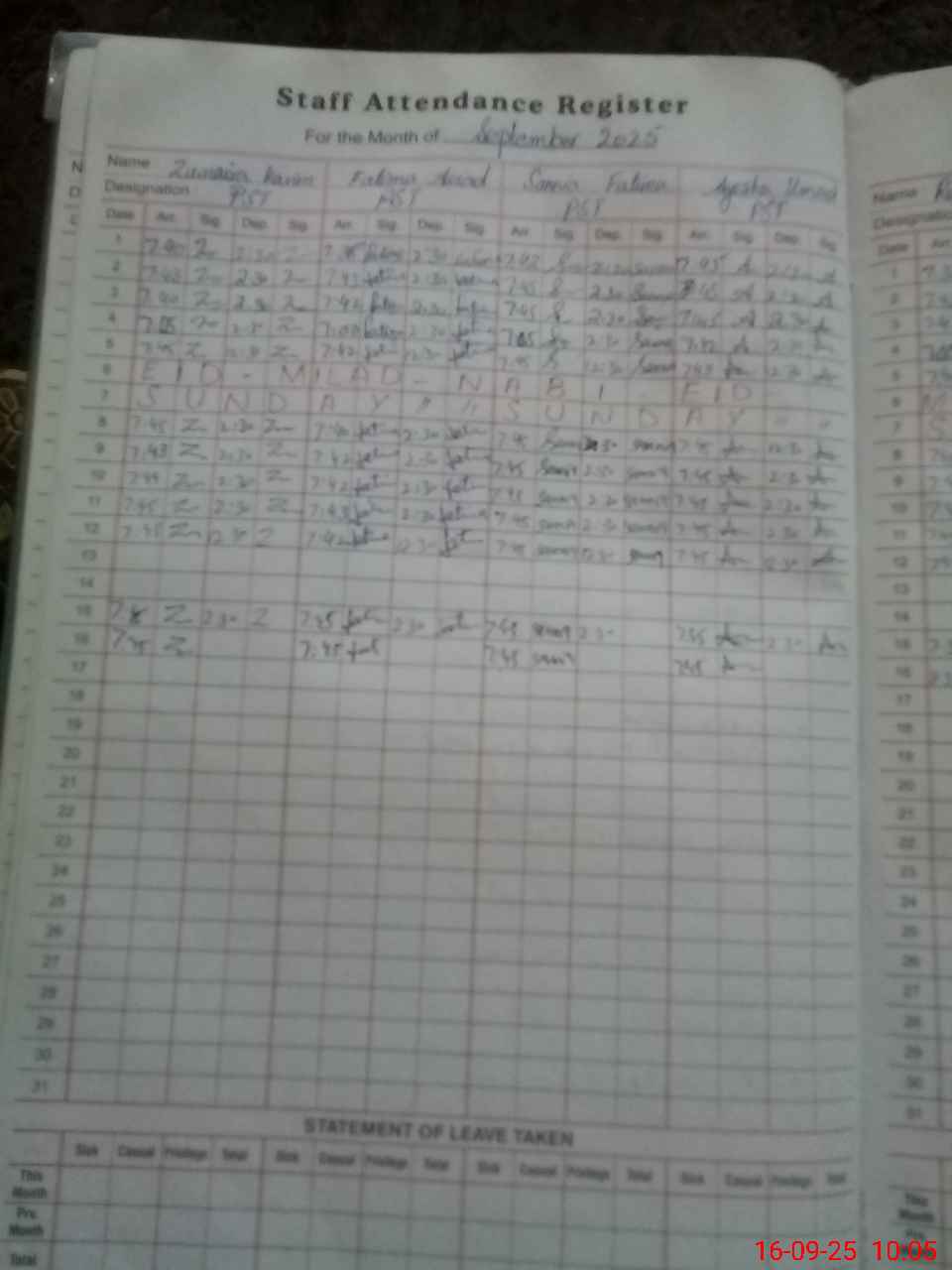 | 35**** | Mu**** Na**** | SG | Regular | 0 | 0 | 28 | 0 | 0 | 0 | 0 | 0 | 0 | Absent (Un-Authorized) |